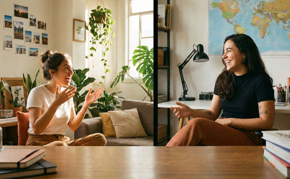Quando você aprende inglês falando sobre sua própria vida, algo mágico acontece no seu cérebro. As palavras novas se conectam com memórias e emoções reais. O vocabulário gruda. As frases saem naturalmente. Porque você não está decorando… você está vivendo o idioma.